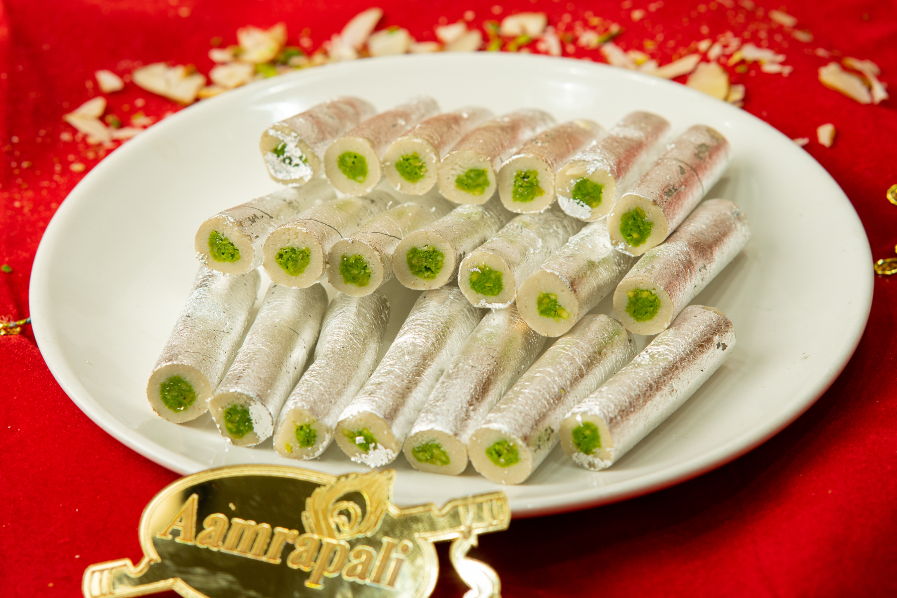 A rich cashew delight rolled with a luscious pistachio filling. Nutty, smooth, and irresistibly festive – a sweet that doubles as a treat and a gift.